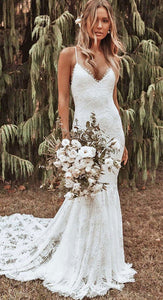 Spaghetti Straps Mermaid Lace Wedding Dresses Bridal Gown