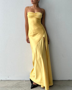 Yellow Prom Dresses Spaghetti Straps Slit Side Floor Length
