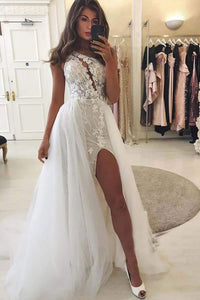 One Shoulder Slit Side Wedding Dresses Bridal Gown with Appliques Lace