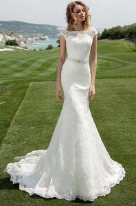 Elegant Lace Mermaid Wedding Dresses Bridal Gown with Sash