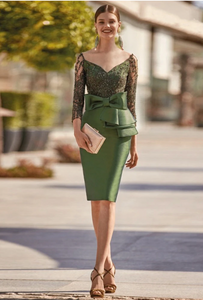 Sheath Lace Olive Green Mother of the Bride Dresses with Sleeves  - Regular price