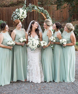 Elegant Chiffon Sage Long Bridesmaid Dresses Under 100