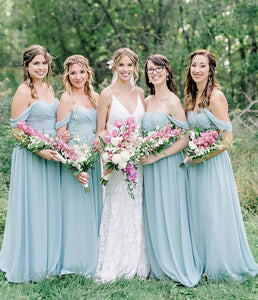 Off the Shoulder Chiffon Long Bridesmaid Dresses Under 100
