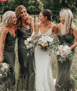 Spaghetti Straps Olive Green Long Bridesmaid Dresses for Wedding Party