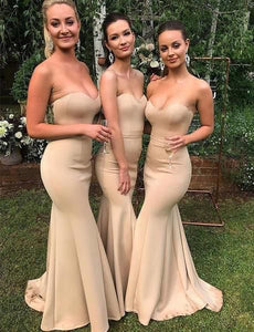Strapless Mermaid Long Nude Bridesmaid Dresses for Wedding