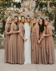 Elegant V Neck Long Bridesmaid Dresses with Full Sleeves