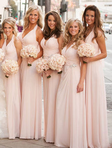 Halter Long Bridesmaid Dresses Waist with Rhinestones