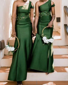 Long Mermaid Bridesmaid Dresses One Shoulder Olive Green