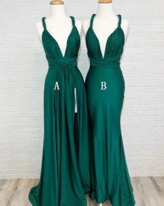 Convertible Teal Green Side Slit Long Bridesmaid Dresses