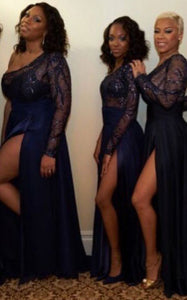 Single Length Dark Royal Blue Prom Dresses with Lace