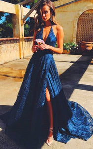 Halter Slit Lace Prom Dresses Backless Evening Dress  - Precio habitual