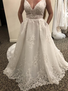 V Neck Wedding Dresses Bridal Gown with Appliques Lace