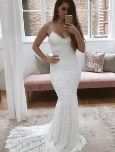 Spaghetti Straps Wedding Dresses Bridal Gown with Lace
