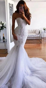 Mermaid Wedding Dresses Bridal Gown with Lace Appliques