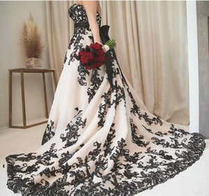 Sweetheart Wedding Dresses Bridal Gown with Black Lace