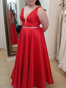 Plus Size V Neck Long Prom Dresses Waist with Beaded