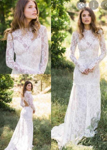 Vintage Lace Sheath Wedding Dresses Bridal Gown with Sleeves