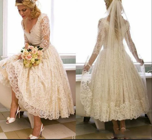 Vintage Wedding Dresses Bridal Gown Tea Length Lace