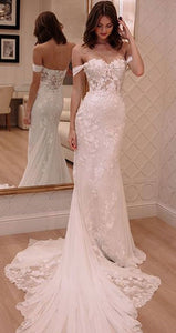 Sheath Off the Shoulder Wedding Dresses Bridal Gown with Lace Appliques