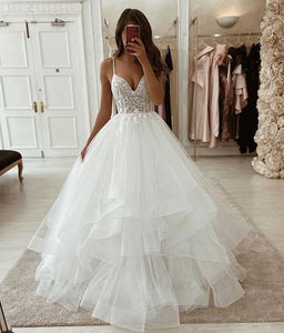 Spagehtti Straps Ball Gown Wedding Dresses Bridal Gown with Appliques Lace