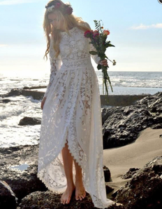 Boho Lace Wedding Dresses Bridal Gown with Sleeves Beach Dresses