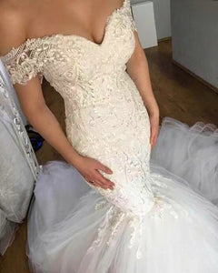 Off Shoulder Mermaid Wedding Dresses Bridal Gown with Lace Appliques