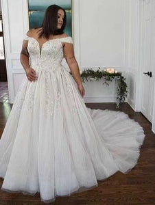 Plus Size Off Shoulder Wedding Dresses Bridal Gown with Lace Appliques