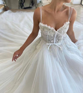 Spaghetti Straps Wedding Dresses Bridal Gown with Lace Appliques