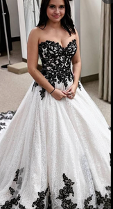 Sparkly Sweetheart Wedding Dresses Bridal Gown with Black Lace