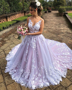 Hot Sell V Neck Long Wedding Dresses Bridal Gowns with Appliques