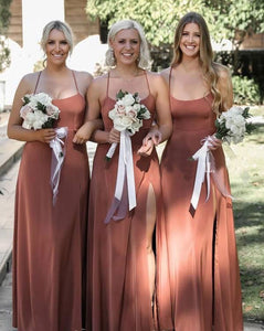 Halter Slit Bridesmaid Dresses Floor Length Chiffon