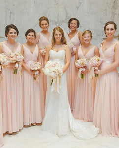 V Neck Chiffon Long Bridesmaid Dresses for Wedding Party