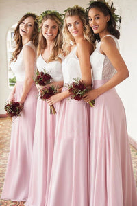 V Neck Chiffon Long Bridesmaid Dresses for Wedding Party