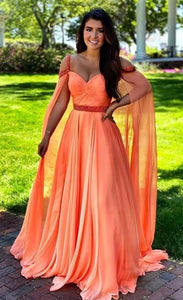 Off Shoulder Prom Dresses Chiffon Waist with Beaded