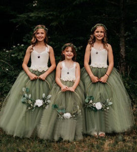 Straps Sage Green Flower Girl Dresses for Wedding Party