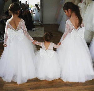 V Back Tulle Flower Girl Dresses with Bowknot for Wedding