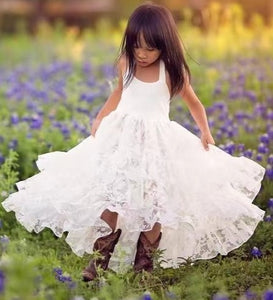 Halter Hi Low Flower Girl Dresses Lace for Wedding Party