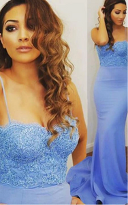 Spaghetti Straps Prom Dresses with Lace Appliques Mermaid