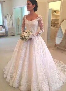 Square Long Sleeves Lace Wedding Dresses Bridal Gown