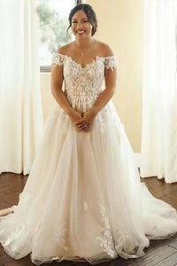 Off Shoulder Wedding Dresses Bridal Gown with Lace Appliques