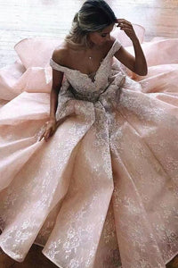 Off Shoulder Wedding Dresses Bridal Gown Pink Lace