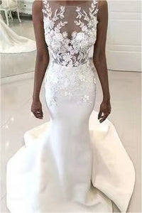 Sheer Neck Wedding Dresses Bridal Gown with Appliques Lace