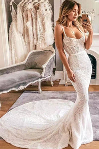 Spaghetti Straps Wedding Dresses Bridal Gown with Lace