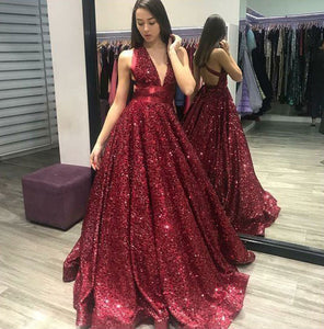 Sparkly Dark Red Squined Long Prom Dresses for Women