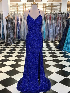 Halter Royal Blue Split Side Long Prom Dresses for Women